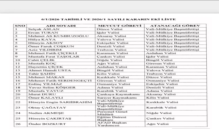 Valiler Kararnamesi Resmî Gazete’de Yayımlandı